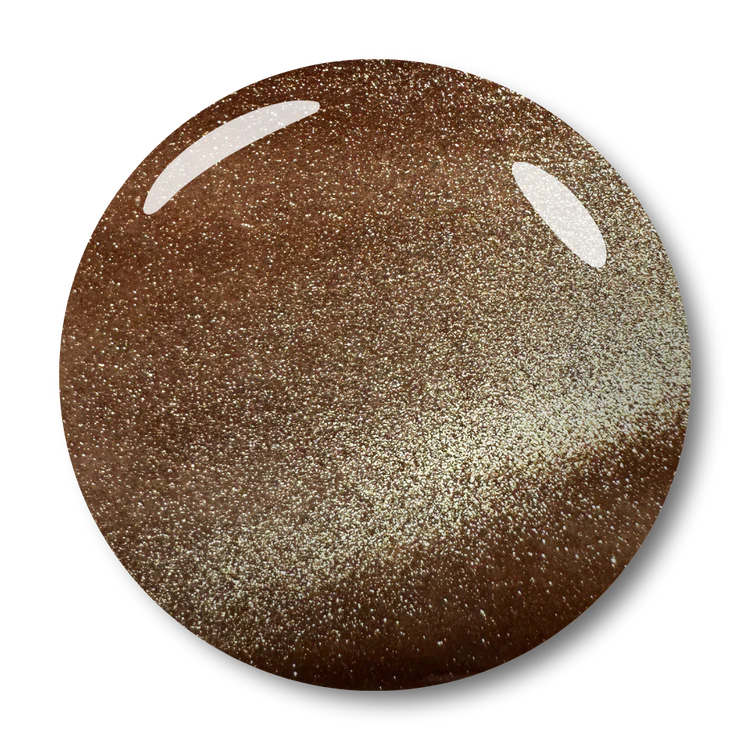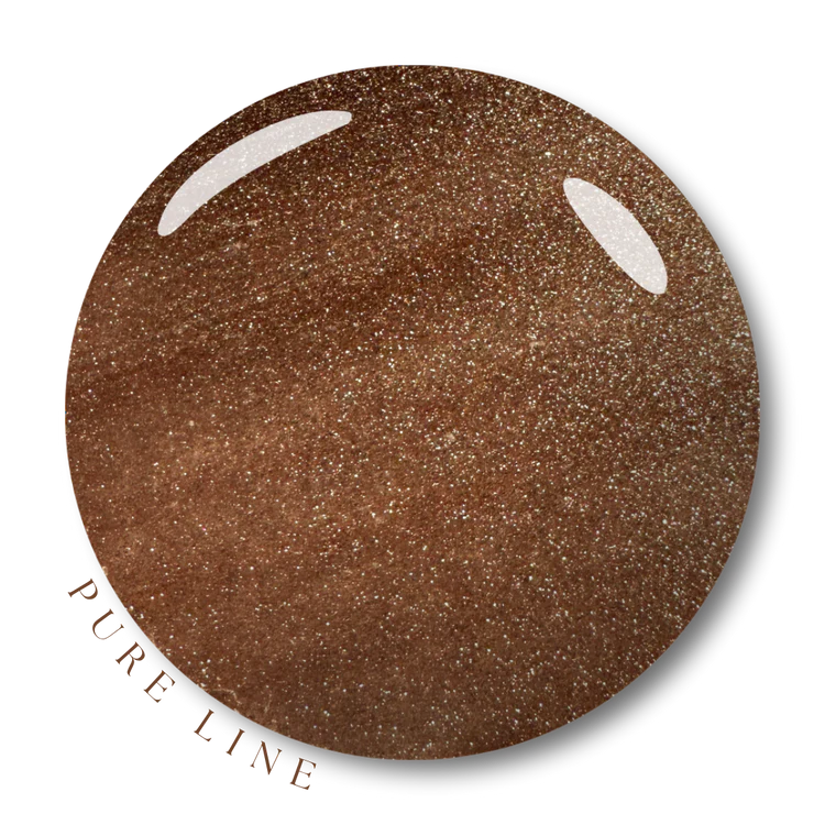 A warm amber-bronze with golden undertones. The fine shimmer gives it a soft-glow metallic finish with a glowing, radiant depth.