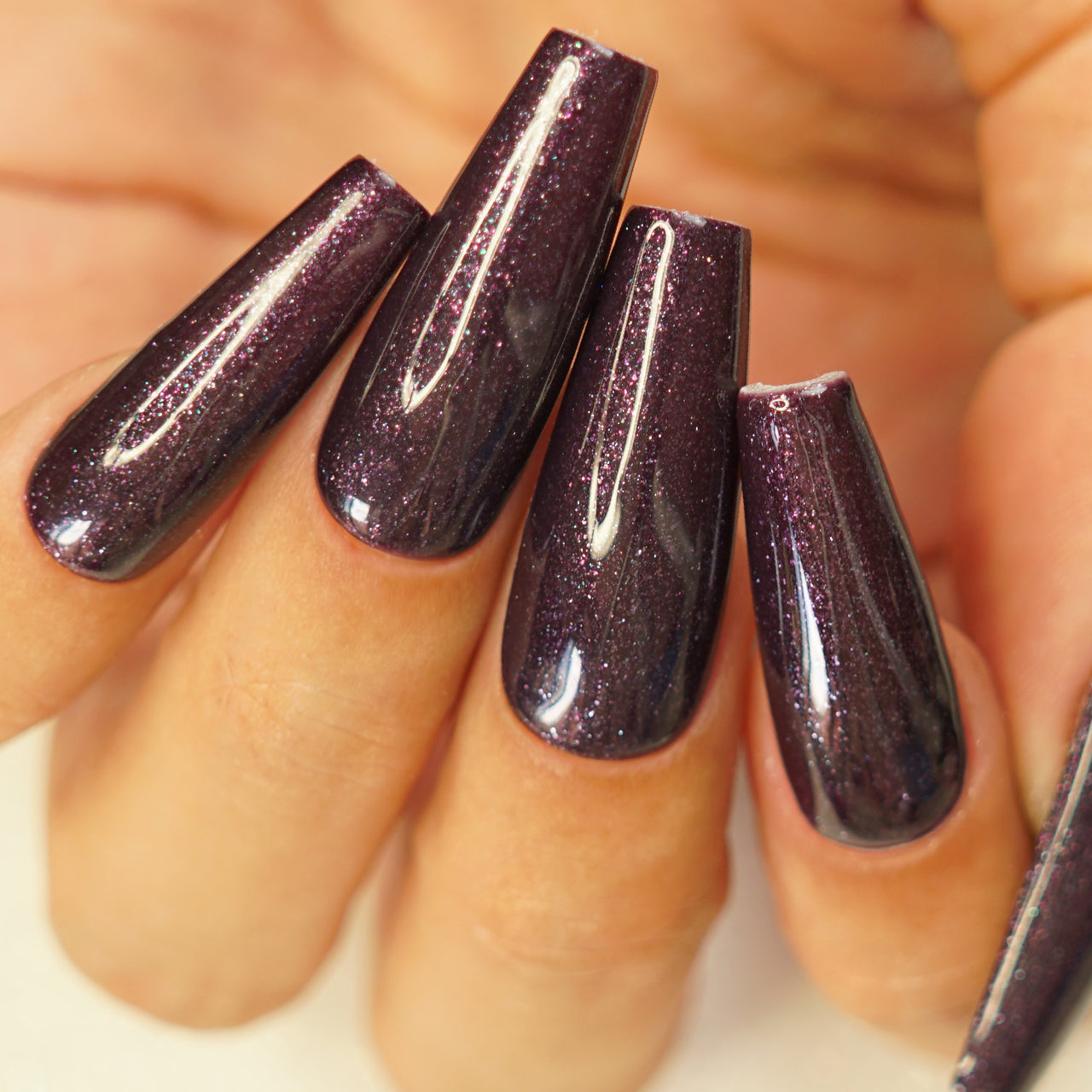 Shine bright like an amethyst!  Sparkle Amethyst is a luxury gel polish colour. It is a gorgeous mix of dark, royal purple, and beautiful glitter. Sparkle Amethyst is an unusual shade for mysterious ladies.