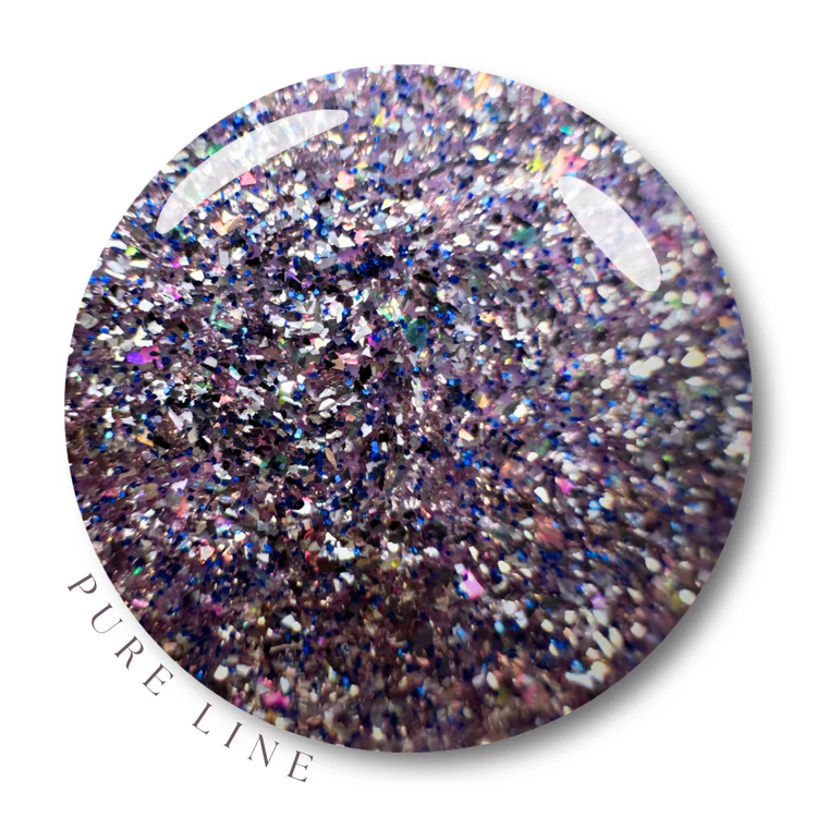 Piesātināts, daudzdimensionāls dažādu gliteru maisījums ar vēsu lavandas pamatni un folijas gabaliņiem visās varavīksnes krāsās. Gaismā laistās un mirdz violetā, ledaini sudrabotā, kā arī kobalta un rozā tonī.