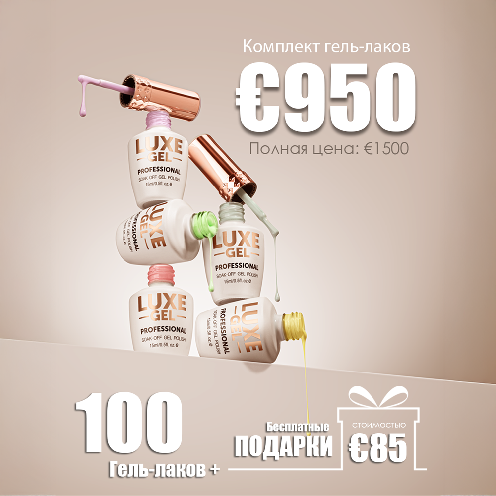 Набор из 100 гель-лаков — выгодная мега-коллекция с широким выбором классических оттенков и модных цветов.